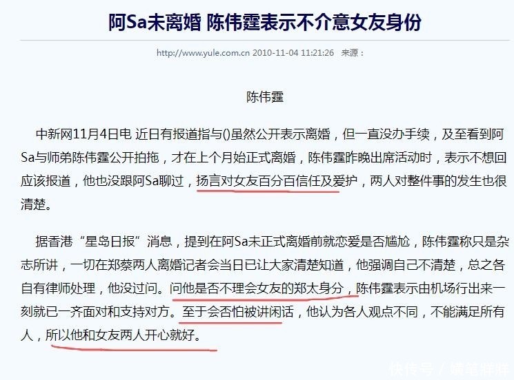 彼时两人尚未完成法律手续,媒体蜂拥而至,不断追问陈伟霆如何看待阿Sa曾是“郑太”的身份,以及他对这段过往的态度。